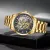 Make a bold statement with this striking men’s skeleton quartz watch. Featuring a gold-tone finish and openwork dial, this timepiece blends retro charm with contemporary luxury. Whether you’re dressing up for a formal event or adding flair to everyday wear, this watch brings timeless sophistication to your wrist. Its intricate inner mechanics are on full display, capturing the beauty of time in motion. With its blend of high-performance quartz movement and vintage design, this is more than a watch—it’s a conversation starter.